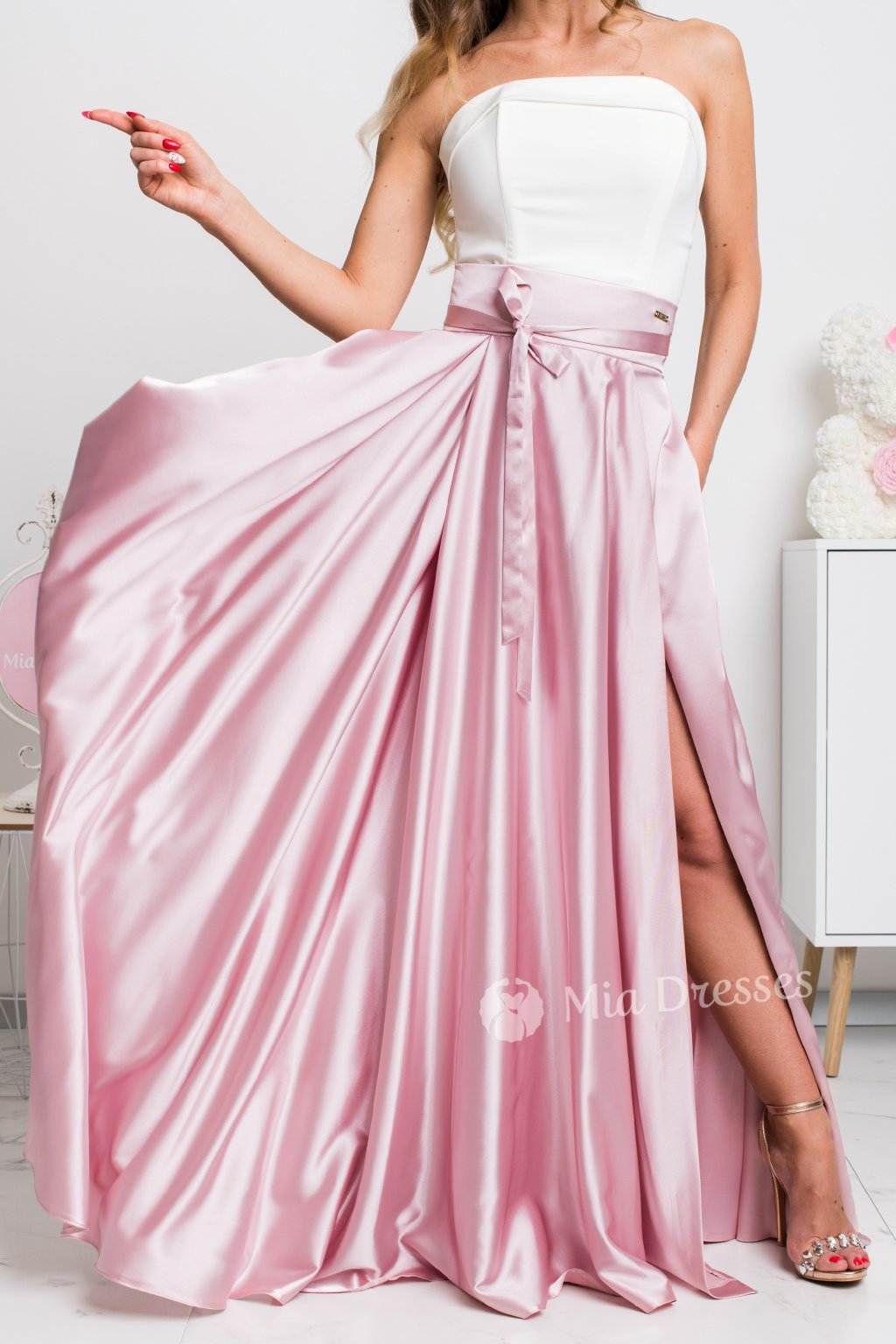 Poškozené zboží - Starorůžová saténová sukně s rozparkem