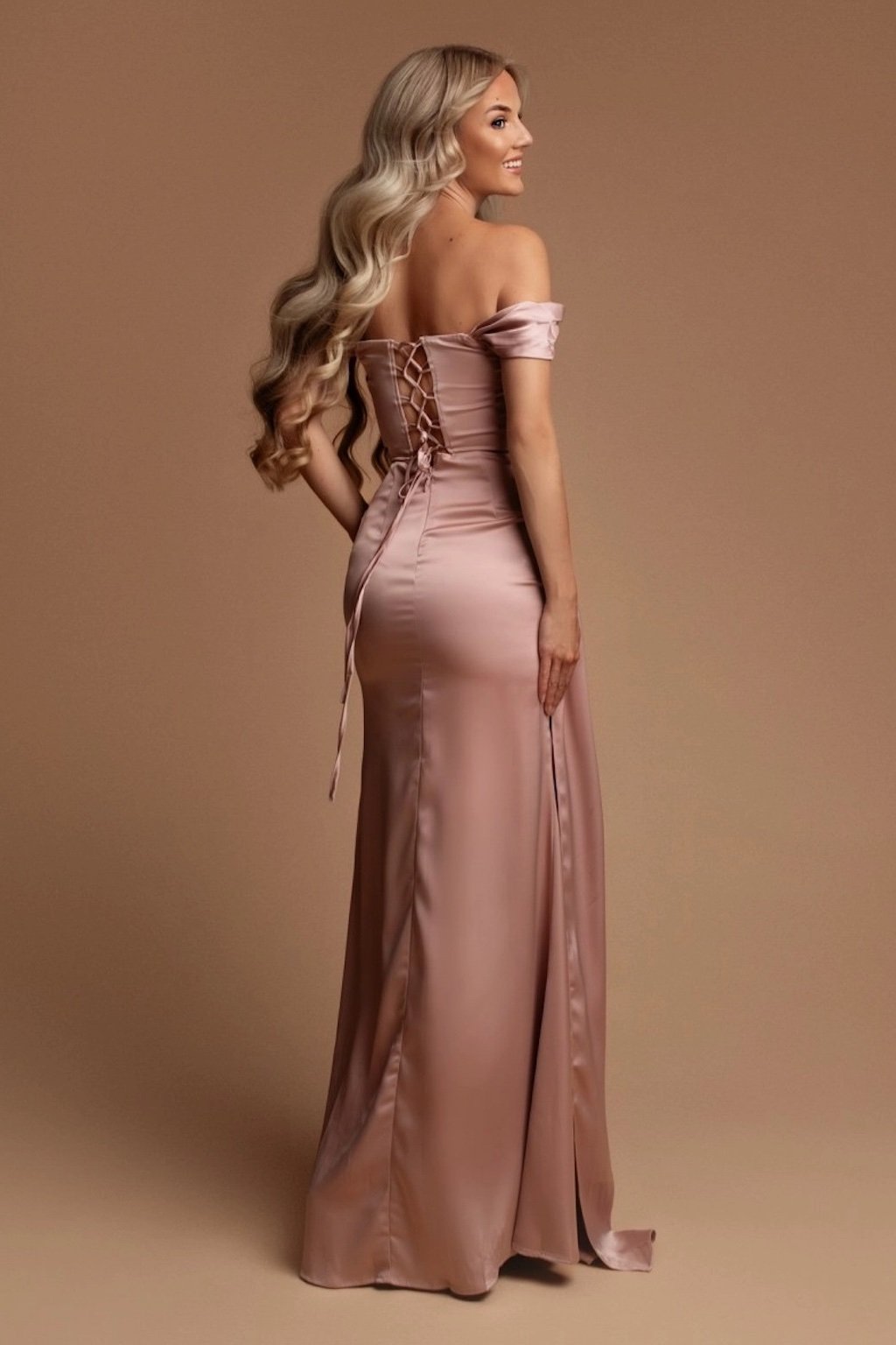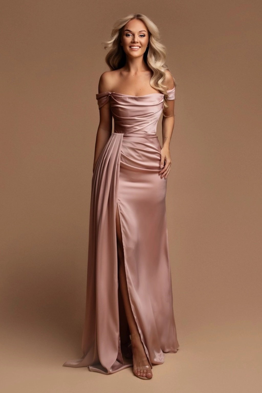 Poškozené zboží - Starorůžové přiléhavé šaty spuštěné na ramena