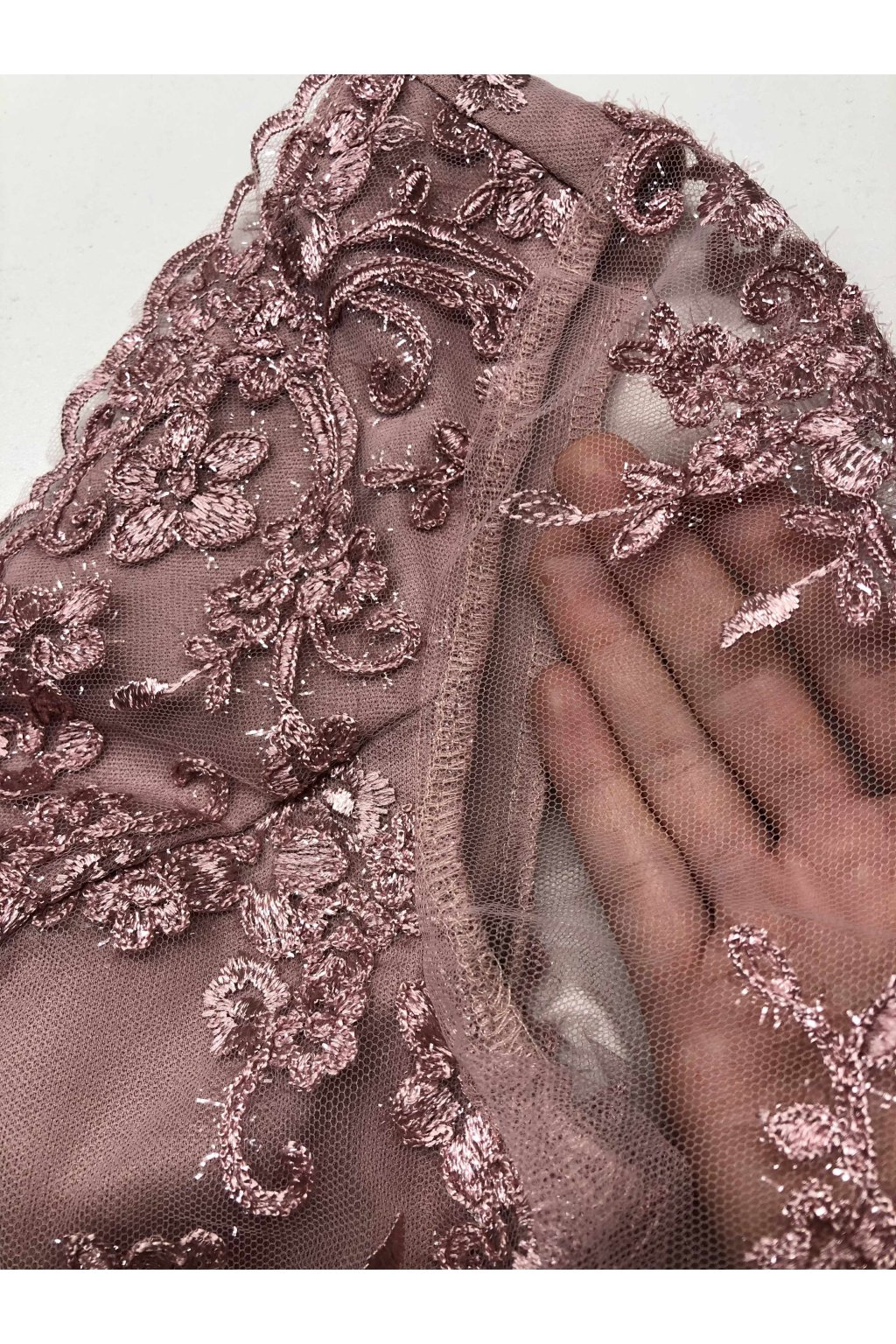 Poškozené zboží - Starorůžové společenské šaty s krajkou