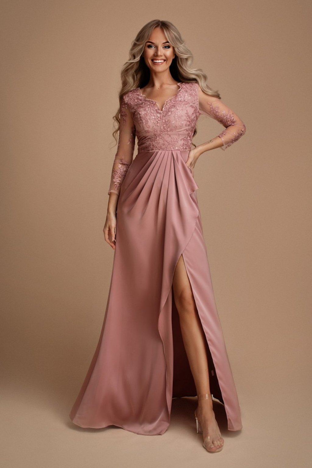 Poškozené zboží - Starorůžové společenské šaty s krajkou