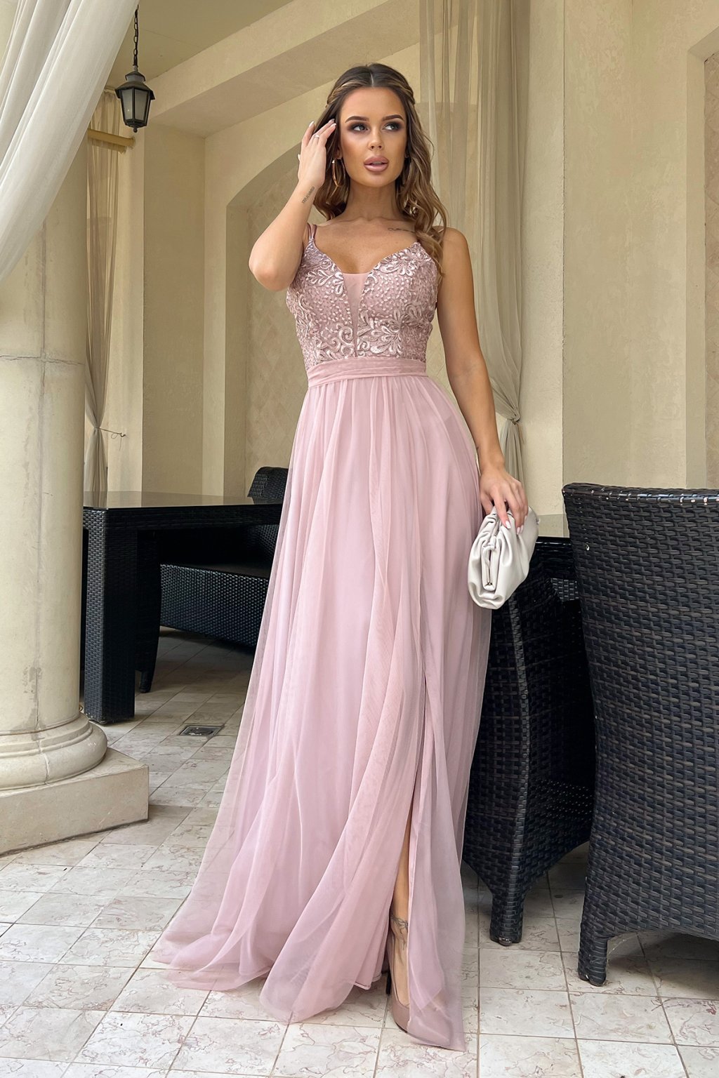 Poškozené zboží - Starorůžové společenské šaty s týlní sukní