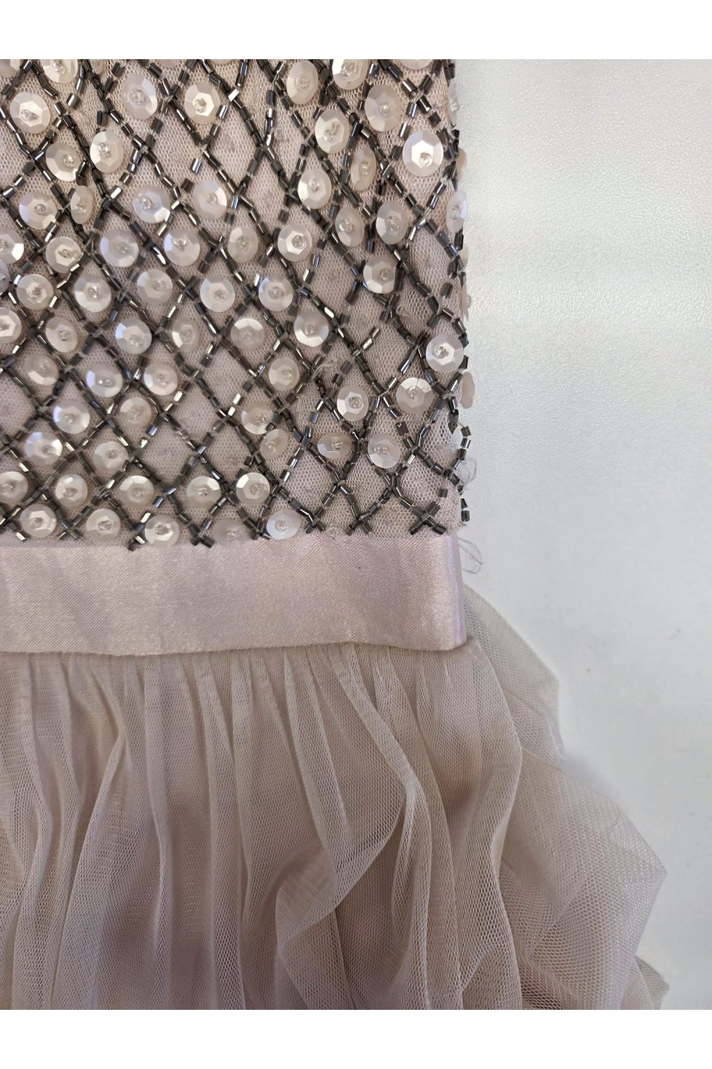 Stát se alespoň na jednu noc princeznou? V těchto šatech nepochybně! Krásná tylová sukýnka a decentní zdobení korálky vzbuzují pohádkový, romantický dojem. Vzadu se zapínají zipem a vrchní část šatů je mírně elastická.