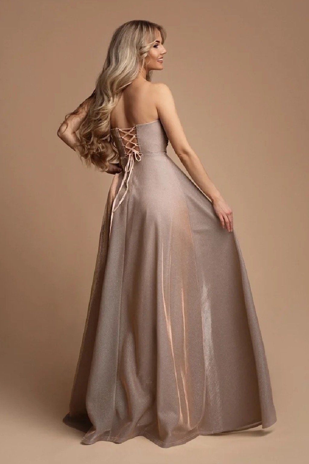 Poškozené zboží - Starorůžové třpytivé šaty s rozparkem