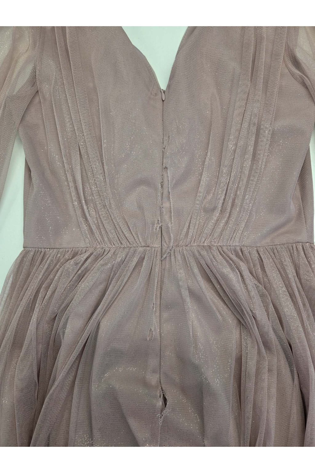 Poškozené zboží - Starorůžové tylové midi šaty s jemnými flitry