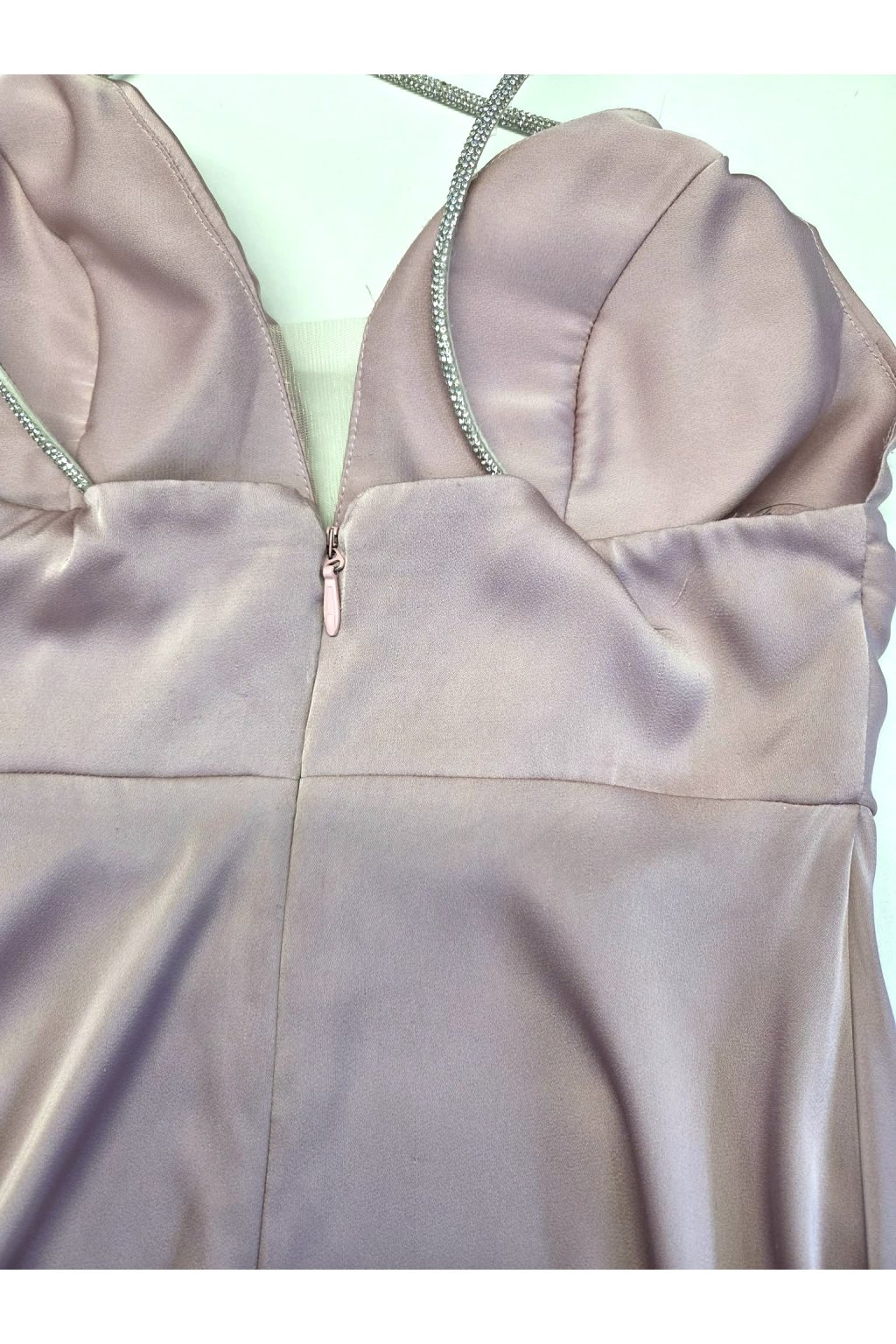 Poškozené zboží - Světle růžové společenské šaty s kamínky