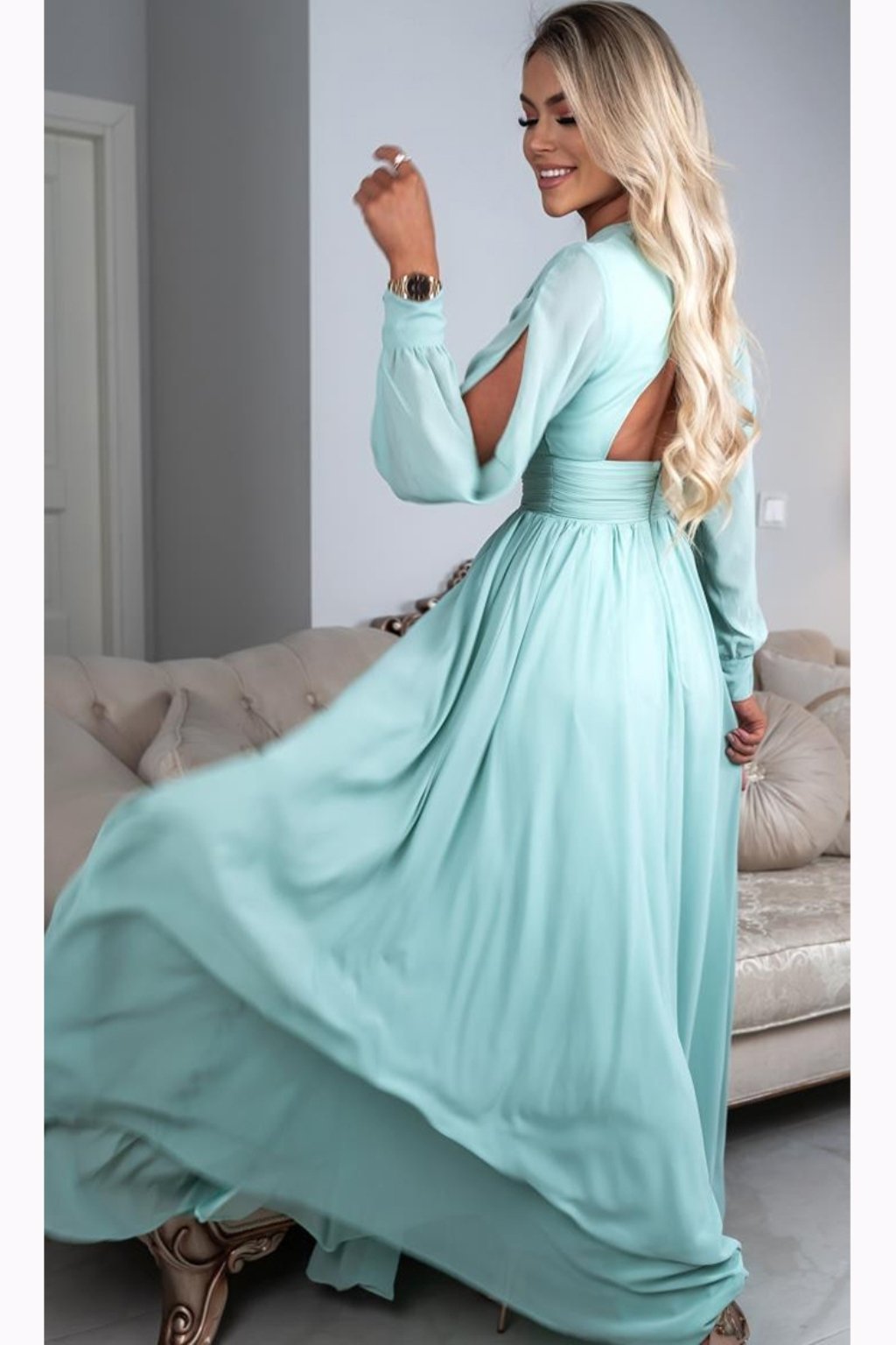 Tyto krásky jsou jednoduše neodolatelné. I přes dlouhé rukávy se v nich budete cítit pohodlně díky lehkému šifonovému materiálu a odhalená záda už jen přispěje k přímo dokonalému vzhledu. Materiál šatů není elastický, vzadu se zapínají zipem a na prsou jsou vyztužené.