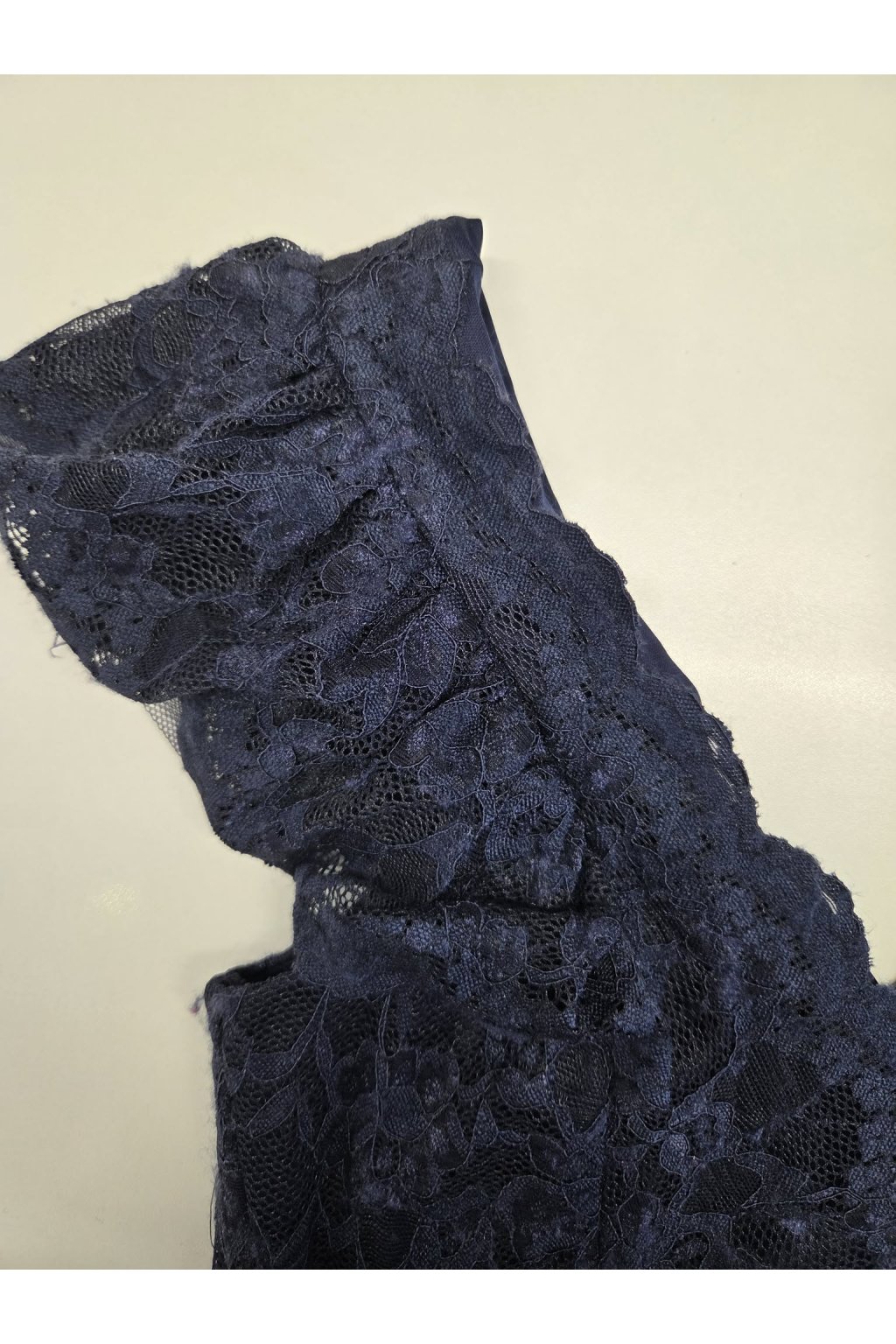 Poškozené zboží - Tmavě modré krajkové přiléhavé šaty
