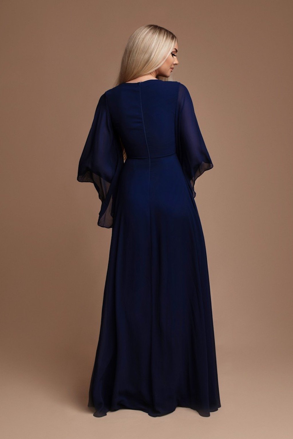 Poškozené zboží - Tmavě modré šifonové šaty s volnými rukávy