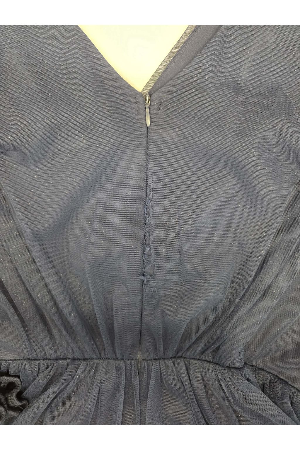 POZOR! Toto zboží je poškozeno, z tohoto důvodu má sníženou cenu. Šaty mají díry podél zipu.