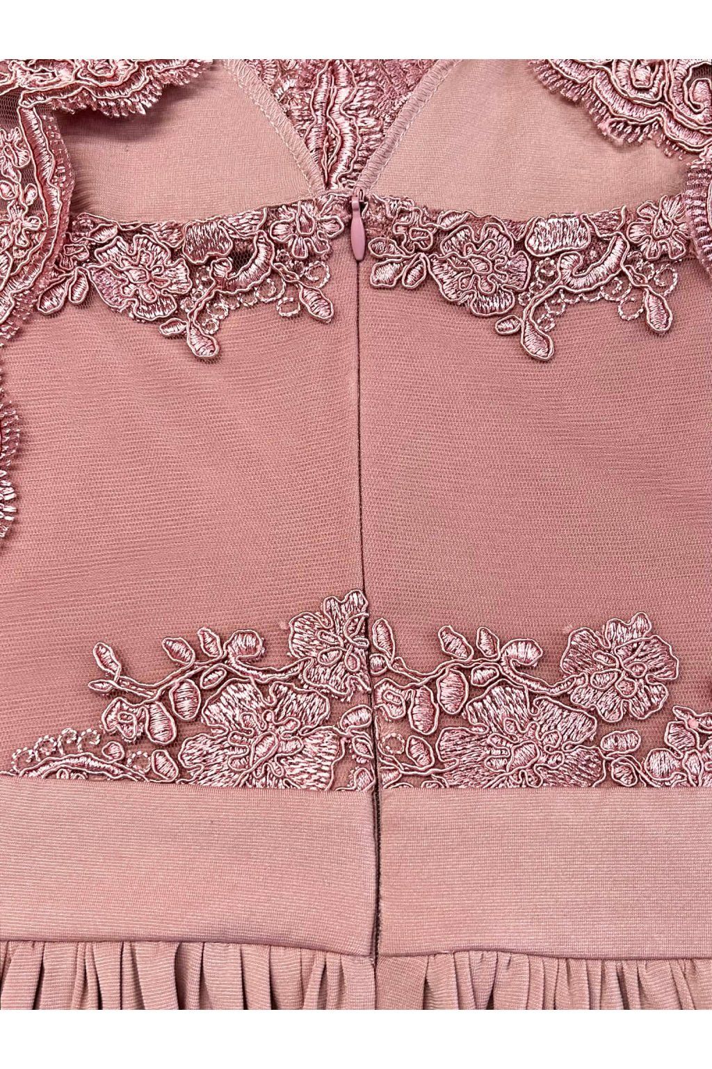Poškozené zboží - Tmavě růžové společenské šaty s krajkou a výřezem na zádech