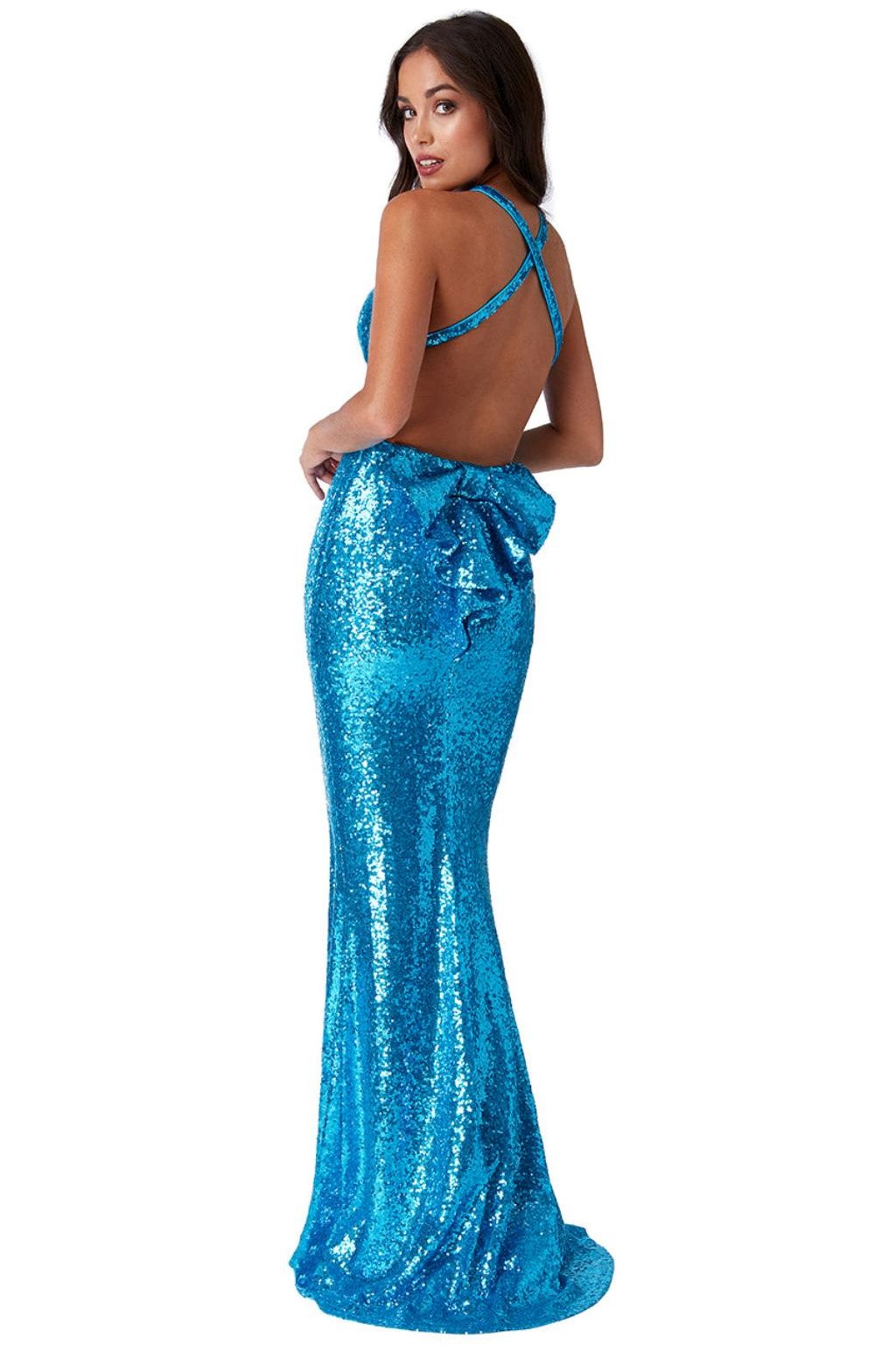 Poškozené zboží - Tyrkysové společenské šaty s mašlí