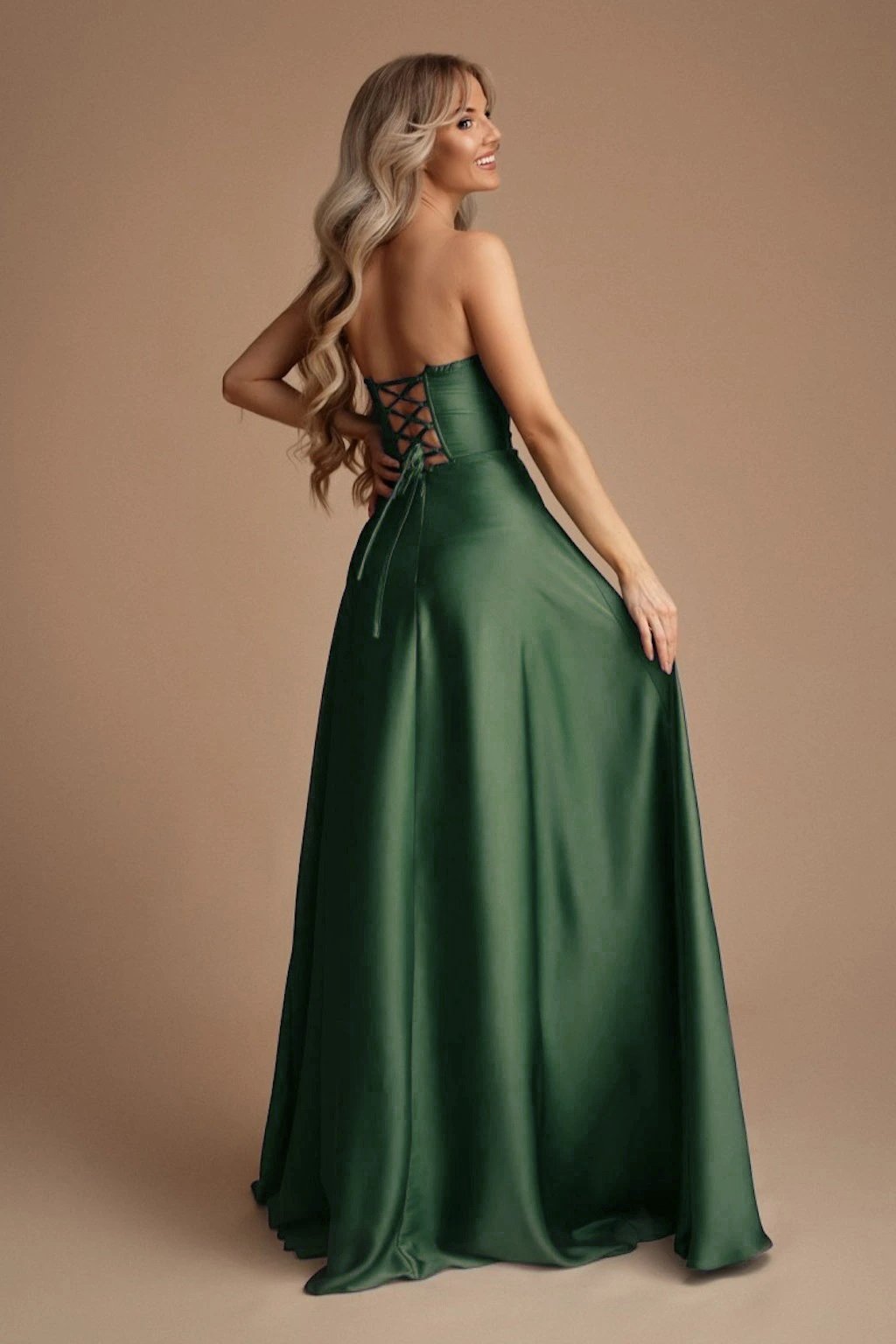 Poškozené zboží - Zelené společenské šaty s korzetem