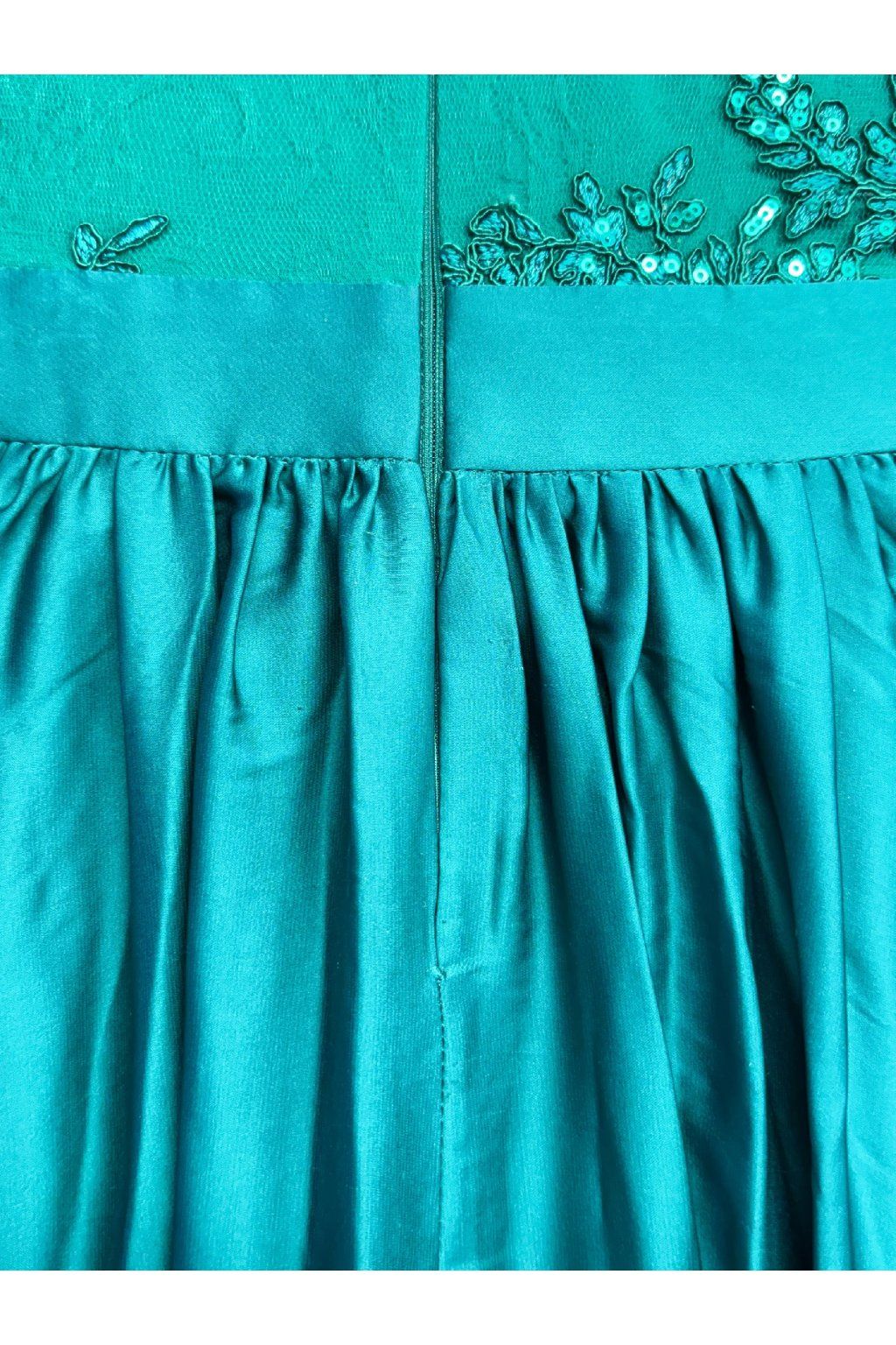 Poškozené zboží - Zelené společenské šaty s krajkou a saténovou sukní