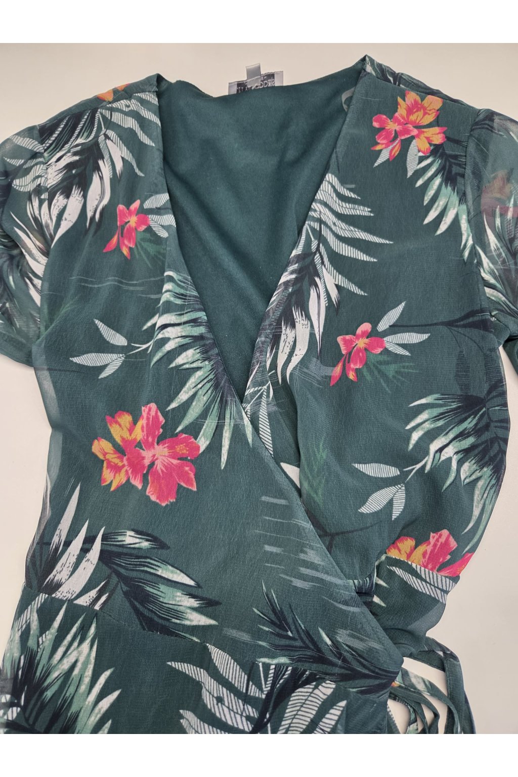 Poškozené zboží - Zelené zavinovací midi šaty s květinami