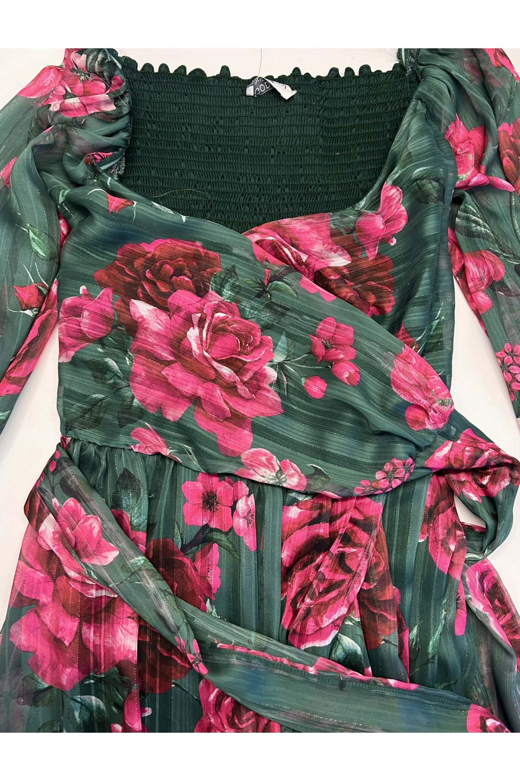 Poškozené zboží - Zelené zavinovací šaty s květinami
