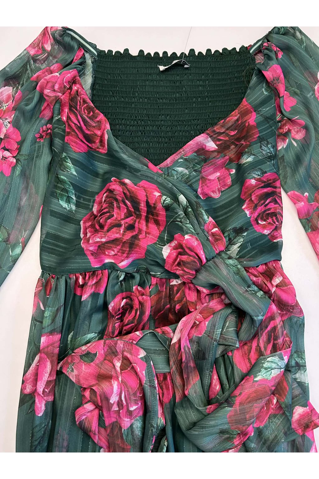 Poškozené zboží - Zelené zavinovací šaty s květinami (Velikost M)