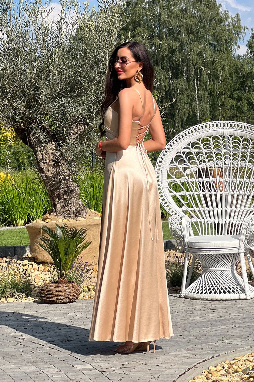 Romantické, něžné, rafinované – jednoduše neodolatelné. Rozparek a příjemný elastický materiál se postarají o pohodlí při tanci. Zajímavou ozdobou těchto šatů je šněrování na zádech a na boční straně se zapínají zipem.