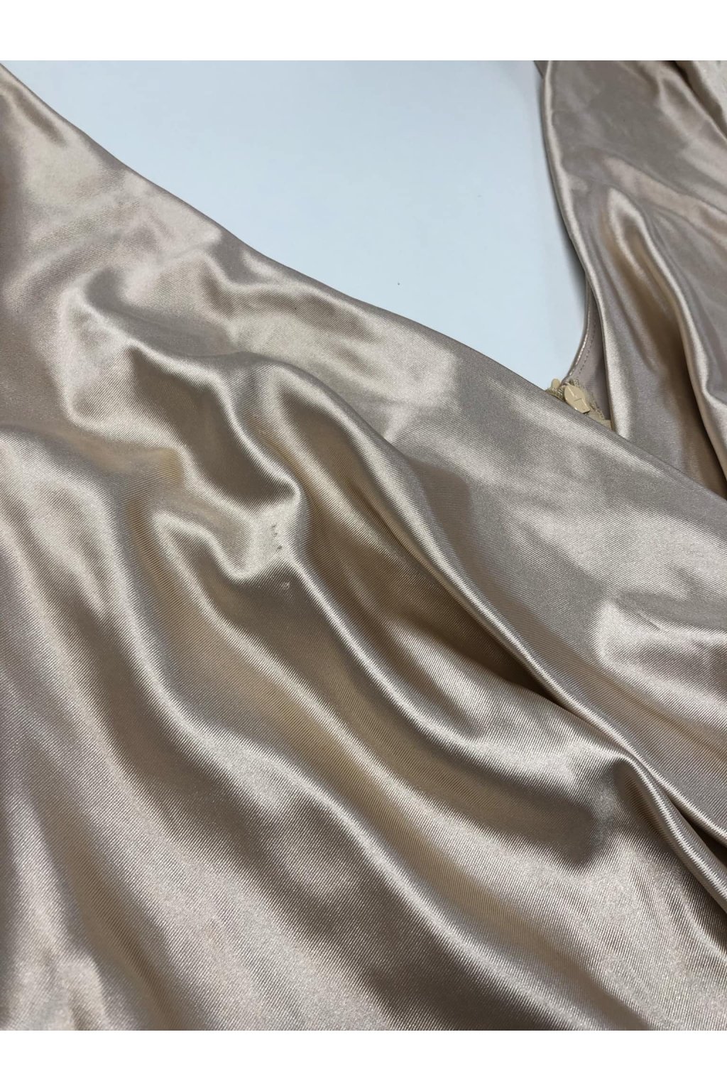 Poškozené zboží - Zlaté lesklé šaty s volánkovými rukávy