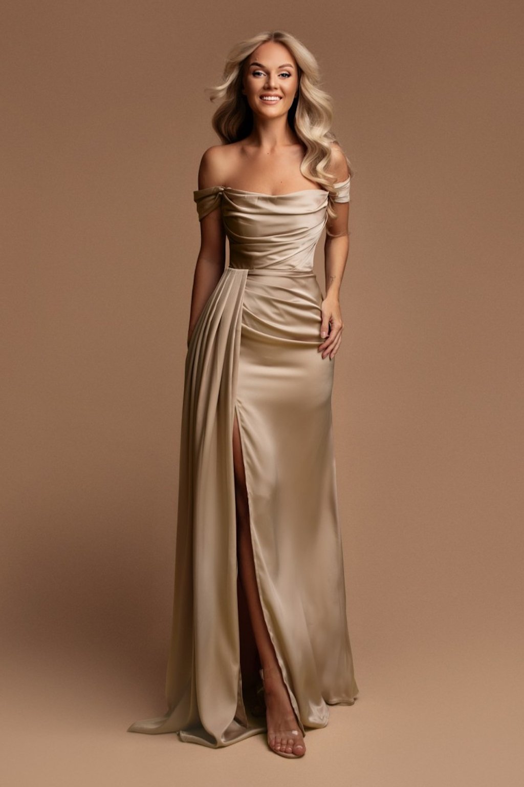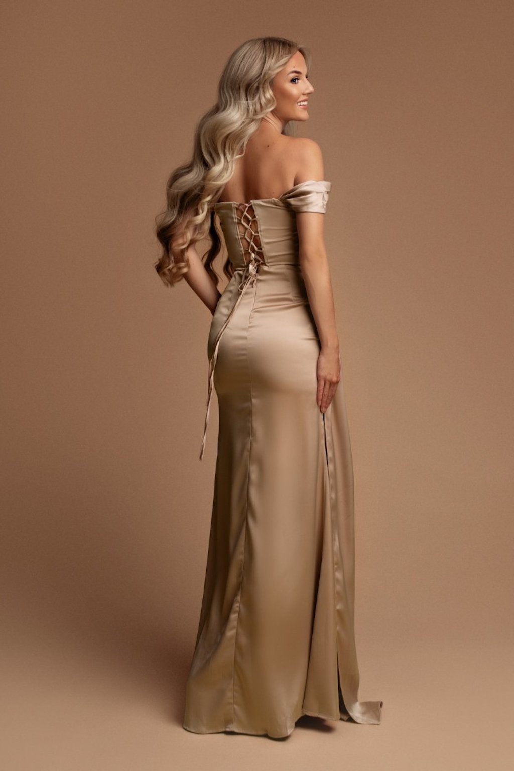 Poškozené zboží - Zlaté přiléhavé šaty spuštěné na ramena