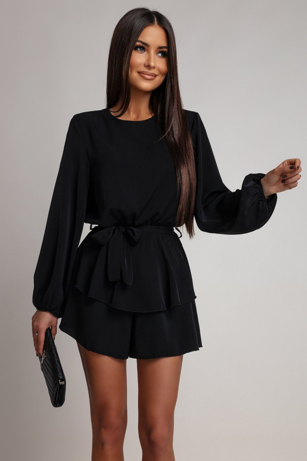 Tento overal je ztělesněním sebevědomé elegance a nenuceného půvabu. Působí luxusně, ale zároveň lehce a žensky – přesně tak, aby podtrhl přirozenou krásu bez zbytečné okázalosti. V kombinaci s výraznými doplňky nebo minimalistickým stylingem vytváří dokonalý glamour look, který je svůdný, sofistikovaný a nezapomenutelný.