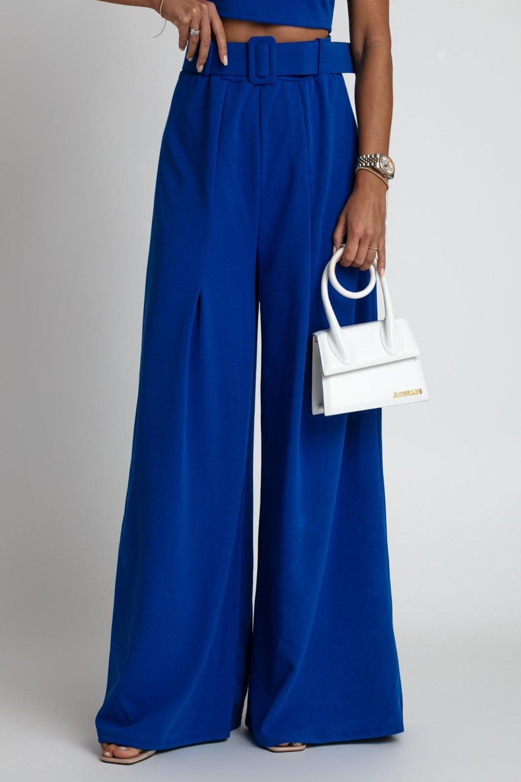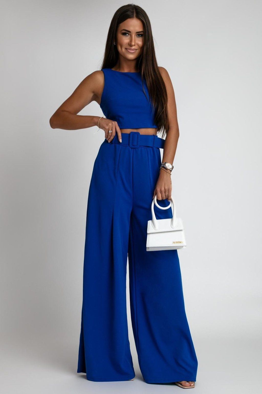 Stylový komplet pro ženy, které se nebojí být výrazné. Krásná barva, elegantní střih a široké kalhoty vytváří sofistikovaný outfit, který je ideální pro výjimečné příležitosti i večerní události. Materiál kompletu je elastický.