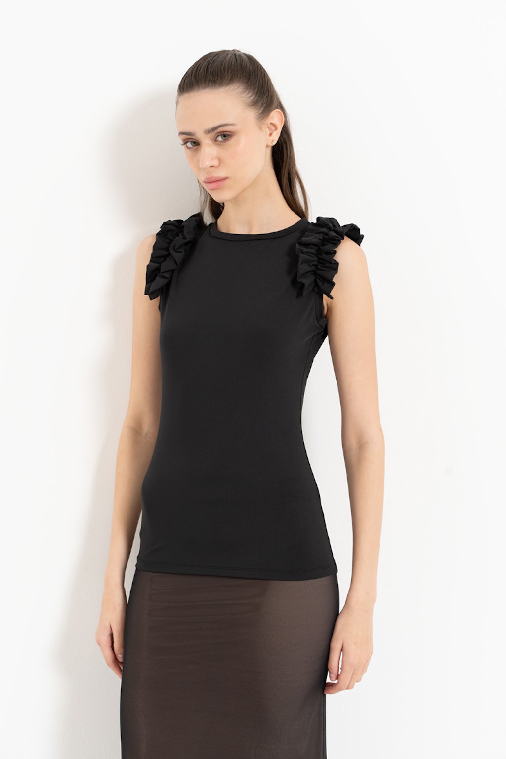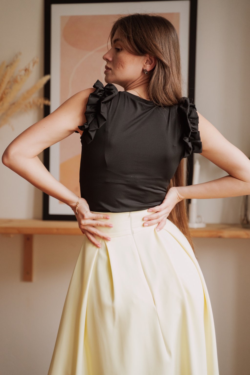 Jednoduchost tohoto topu vkusně a elegantně dotvoří váš outfit s kalhotami nebo nápadnou výraznou sukní. Materiál je elastický.
